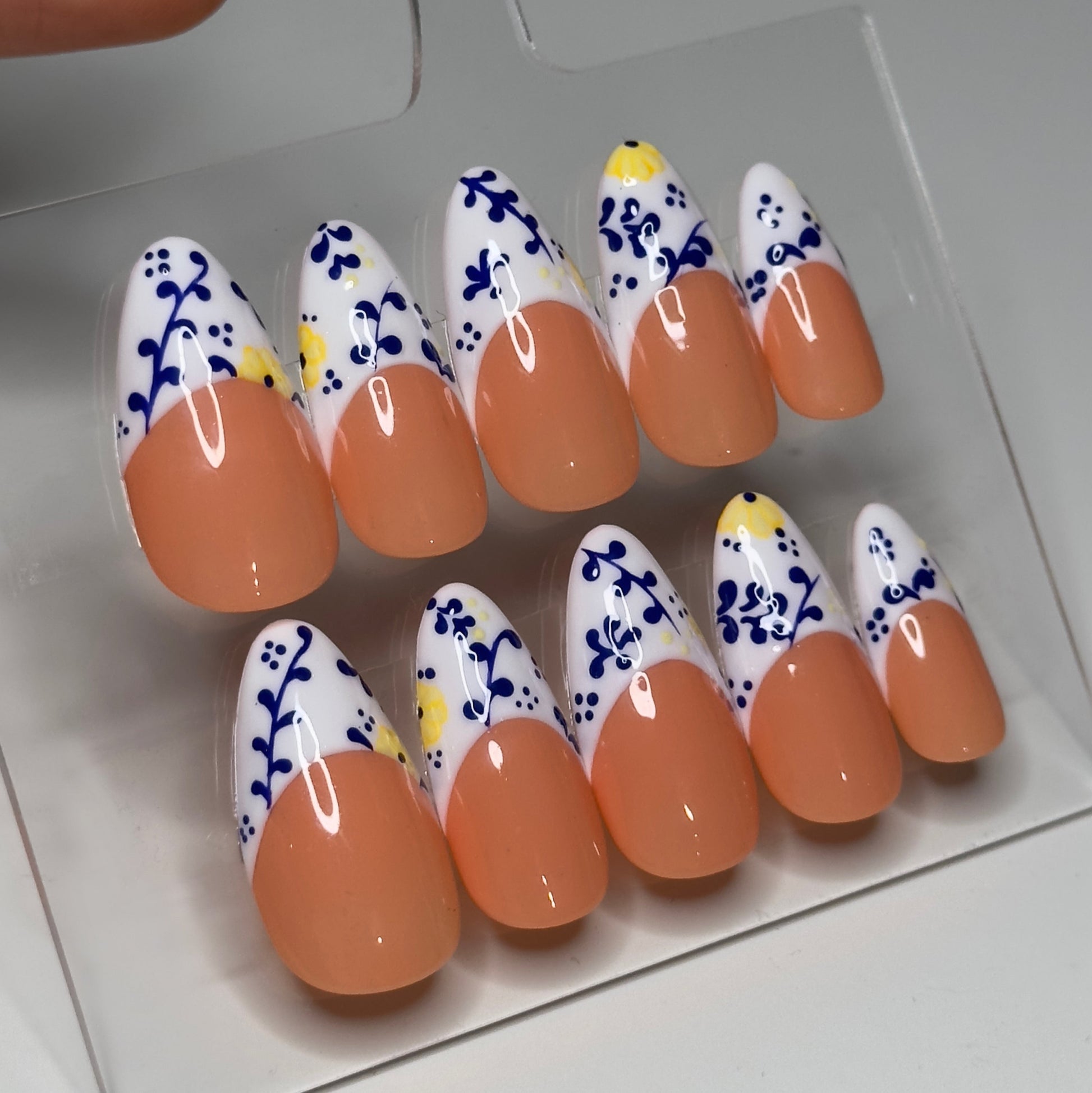 La French rencontre l'art de la porcelaine ! Ce set allie l'intemporalité de la French avec une touche d'élégance inspirée des motifs délicats de la porcelaine. Un design raffiné et sophistiqué qui apporte une dimension artistique à ta manucure. Parfait pour celles qui aiment un look mais veulent un petit détail unique et audacieux. La fusion de la simplicité et de la créativité pour un effet garanti !