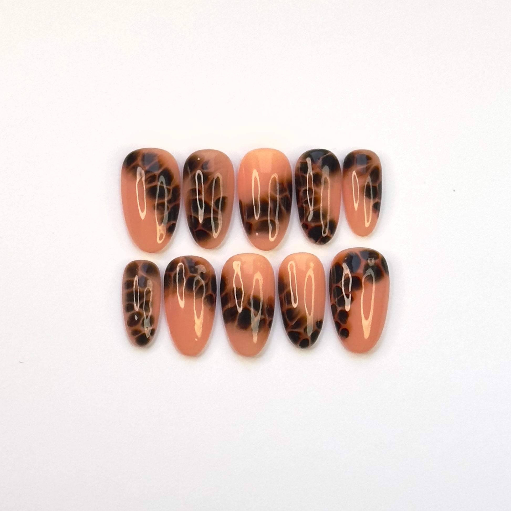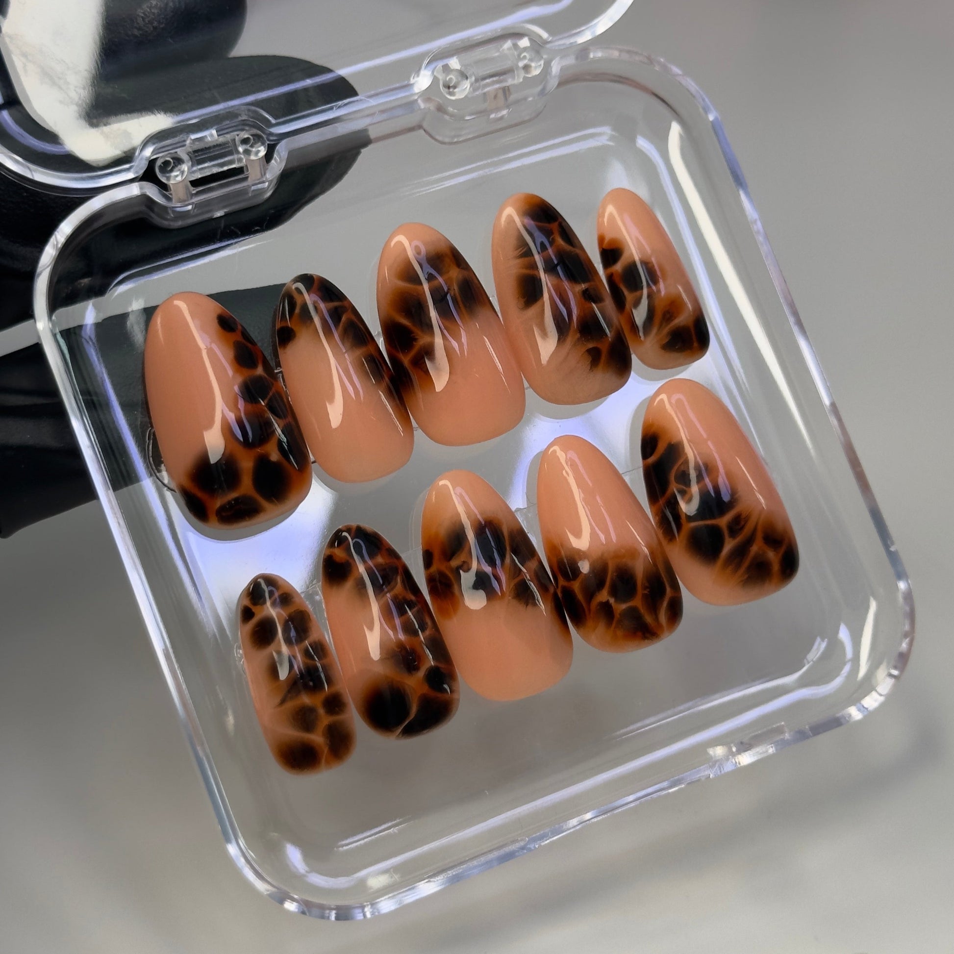 Entre douceur et caractère, “Wifey” est un set qui cache bien son jeu. Avec sa base nude élégante, il laisse place à un subtil effet léopard réalisé au Blooming gel, apportant une touche Savage, mais discrète. Ce design, à la fois délicat et audacieux, incarne parfaitement l’équilibre entre la femme timide et la femme intrépide. Pour celle qui veut être à la fois sensuelle et pleine de mystère. Alors toi, de quel coté tu veux jouer ?